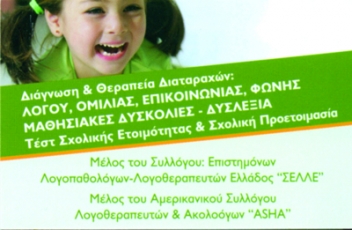 Μέλος συλλόγου λογοπαθολόγων λογοθεραπευτών Ελλάδος, καθυστέρηση λόγου - ομιλίας, δυσλεξία, μαθησιακές δυσκολίες, θεραπεία φωνής